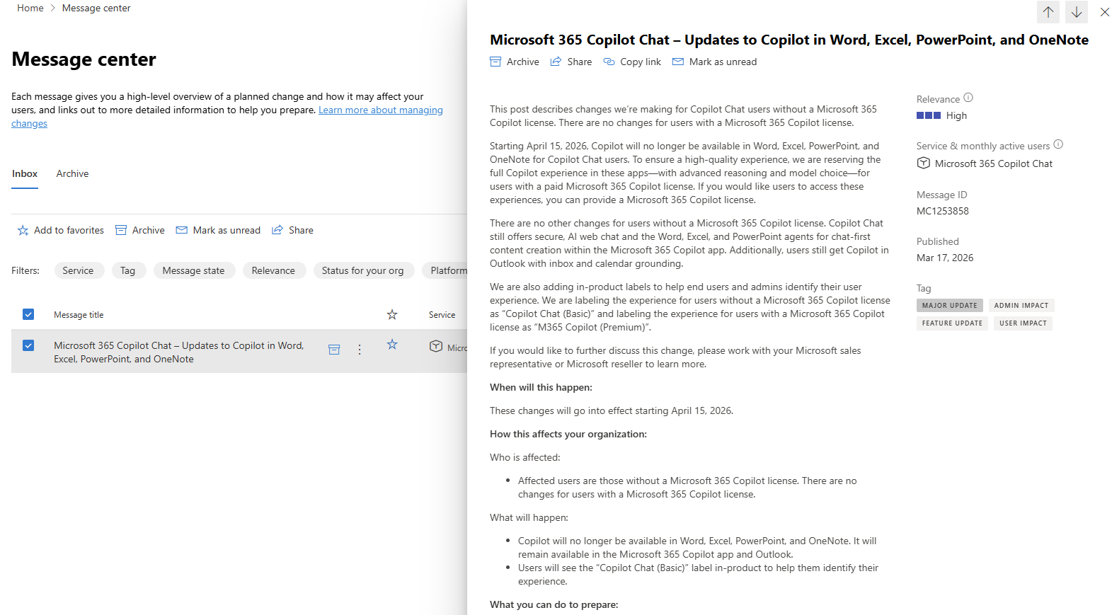 • Affected users are those without a Microsoft 365 Copilot license. There are no changes for users with a Microsoft 365 Copilot license.