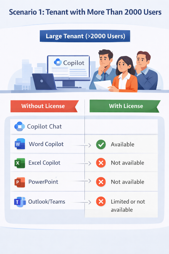 In large tenants, Microsoft is restricting free Copilot inside Microsoft 365 apps.