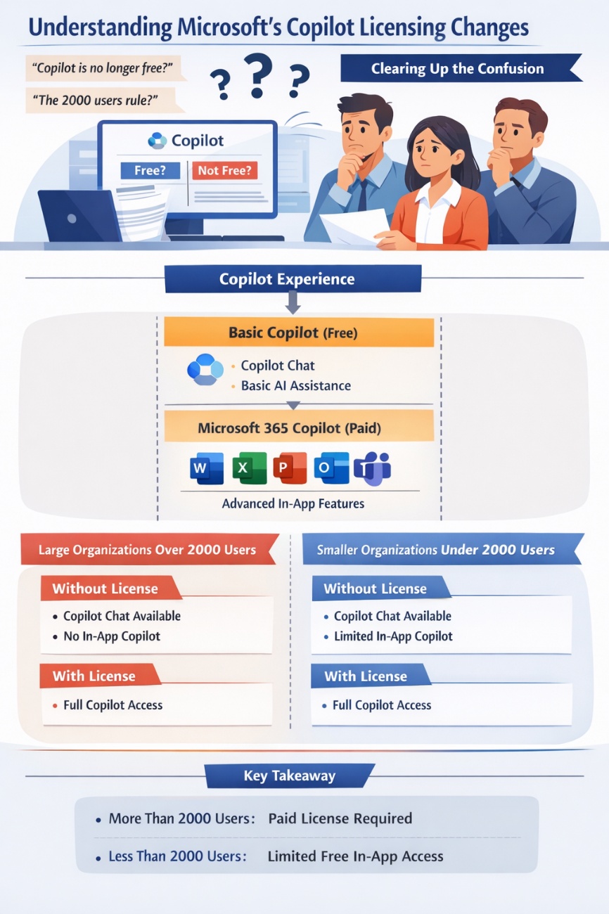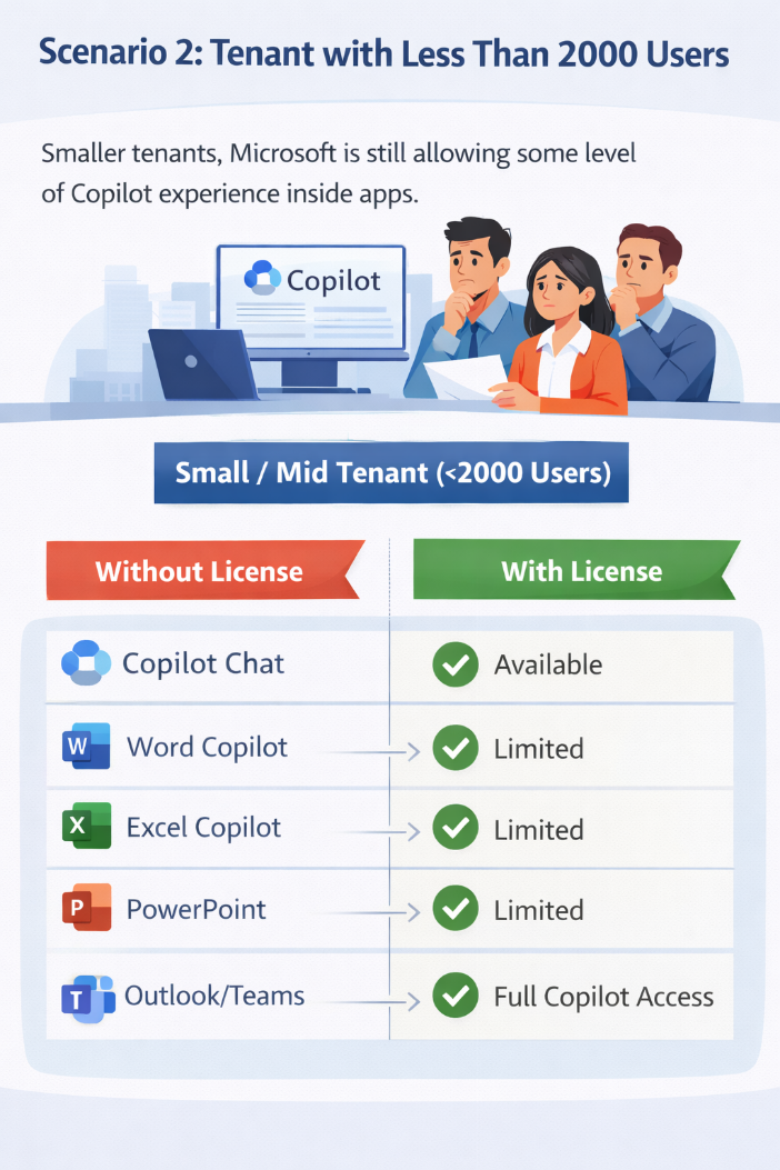 In large tenants, Microsoft is restricting free Copilot inside Microsoft 365 apps.